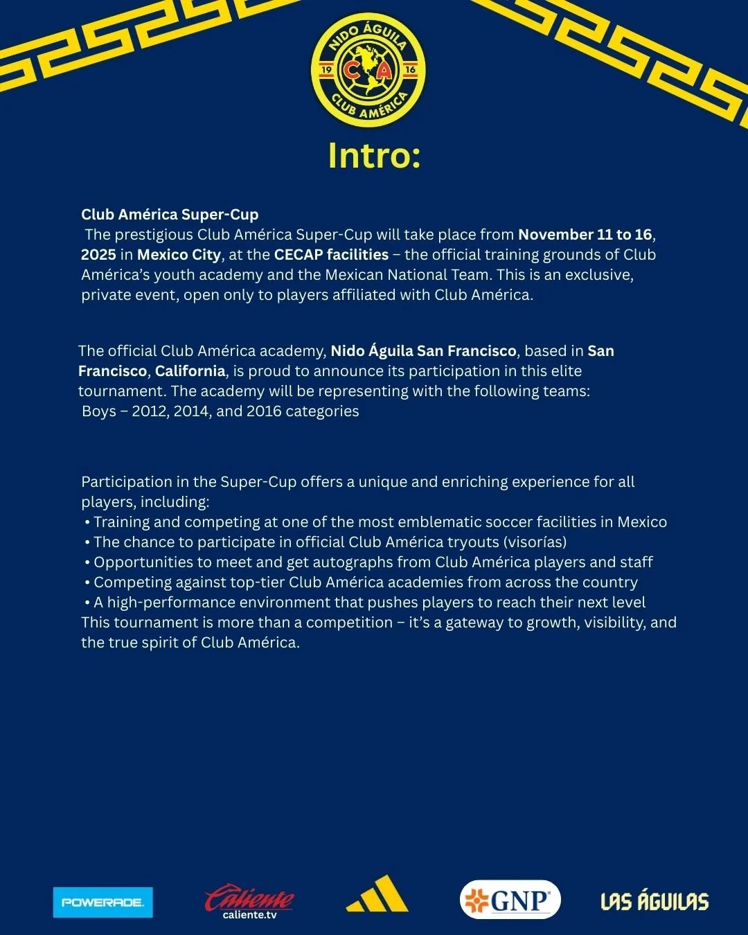 Competition open only to Club America official soccer academies arround México, USA, Central and South América